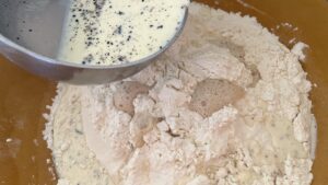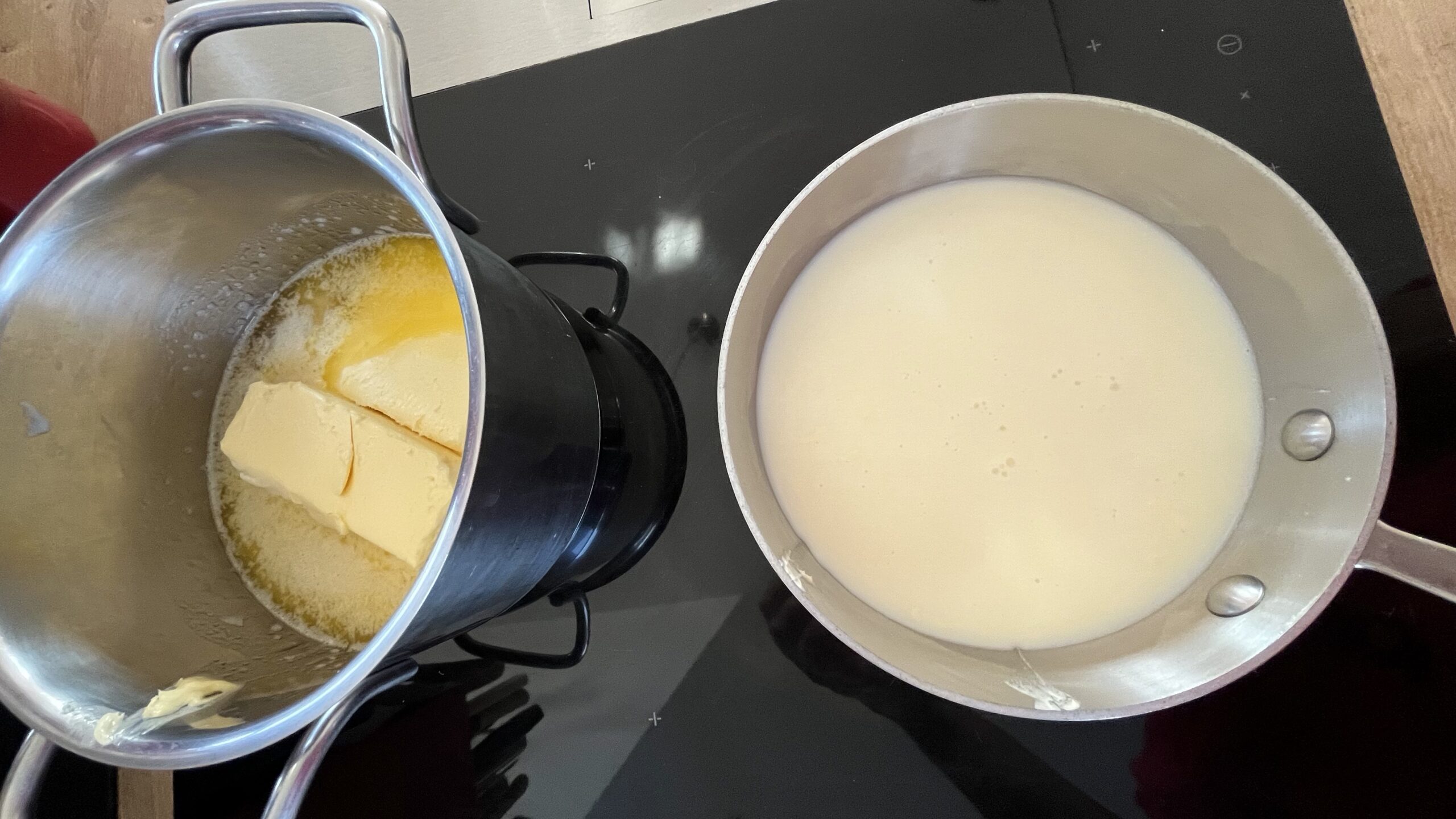 •  erst die Milch, dann das Fett in das Mehl geben, verrühren.