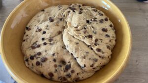 • In Mehlkuhle geben, etwas Mehl darüber streuen, 10 Minuten gehen lassen.