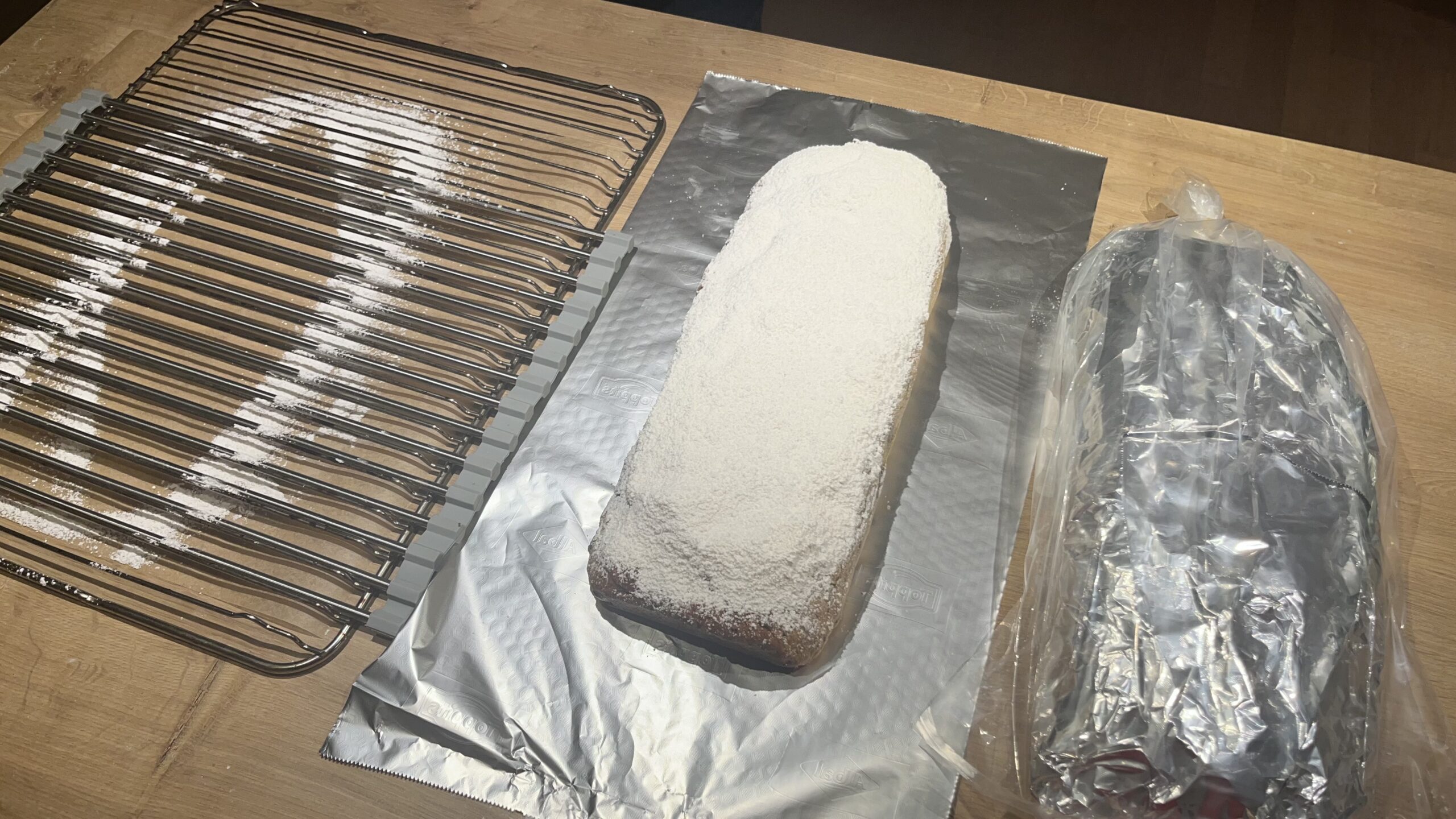 • Abkühlen, dick mit Puderzucker bestäuben.