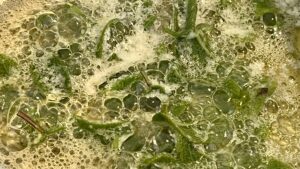 Ca. 25 Minuten im Ofen backen, bis die Kruste goldbraun ist. In der Zwischenzeit die Butter schmelzen, die Salbeiblätter kurz darin frittieren, auf einem Küchenkrepp trocknen.
